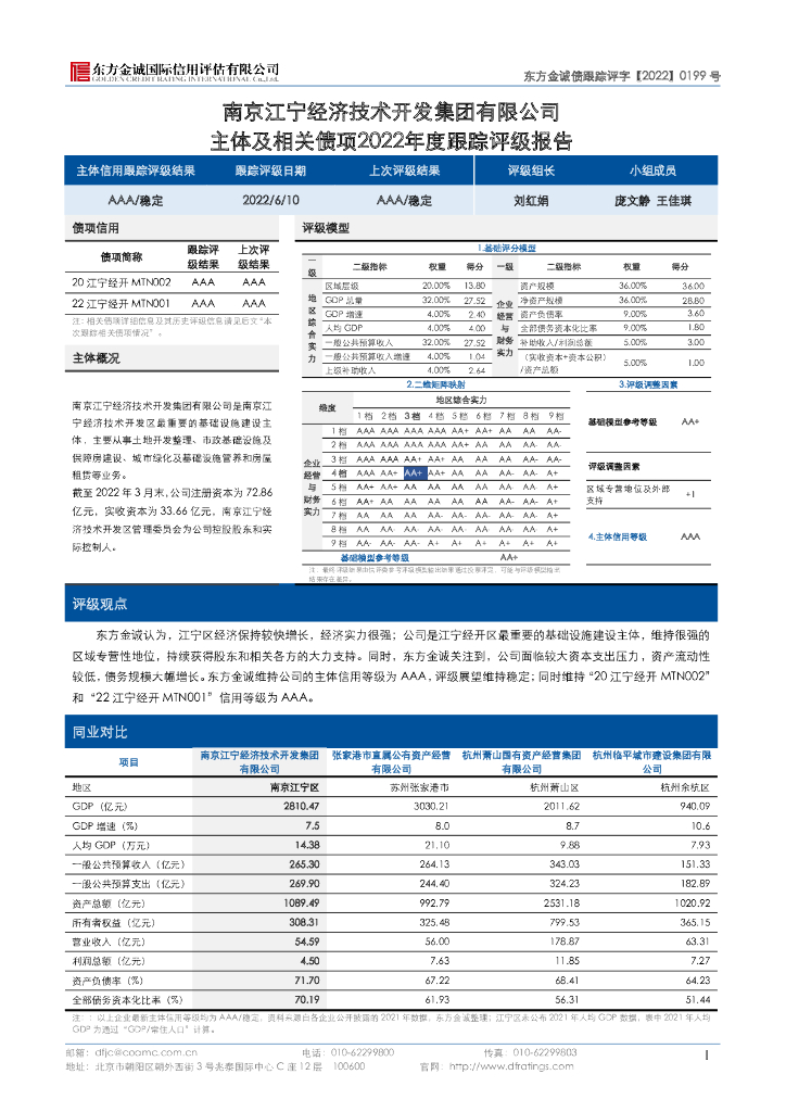东方金诚:南京江宁经济技术开发集团有限公司主体及相关债项2022年度跟踪评级报告.pdf