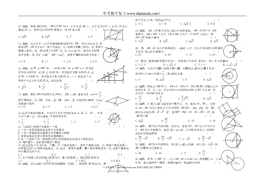 中考第一轮复习数学强化训练-四-(新人教版.无答案).doc