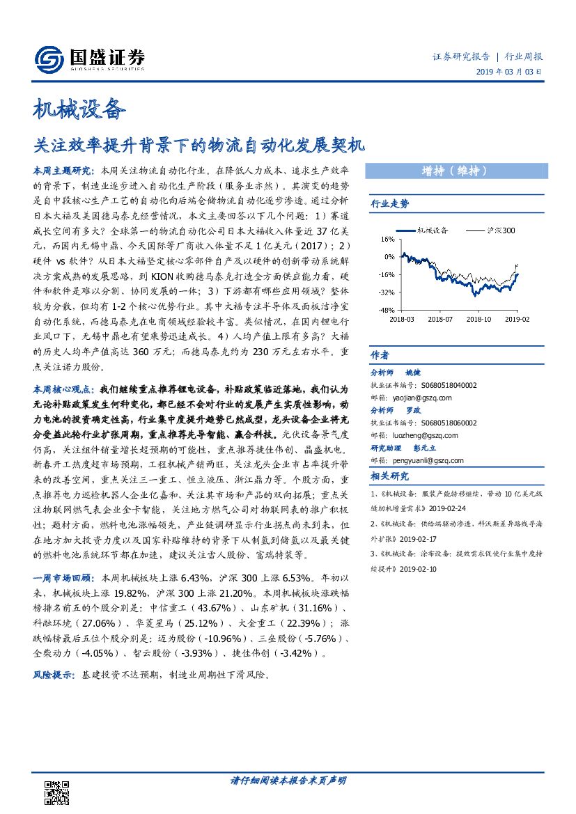 国盛证券:机械设备行业周报:关注效率提升背景下的物流自动化发展契机.pdf