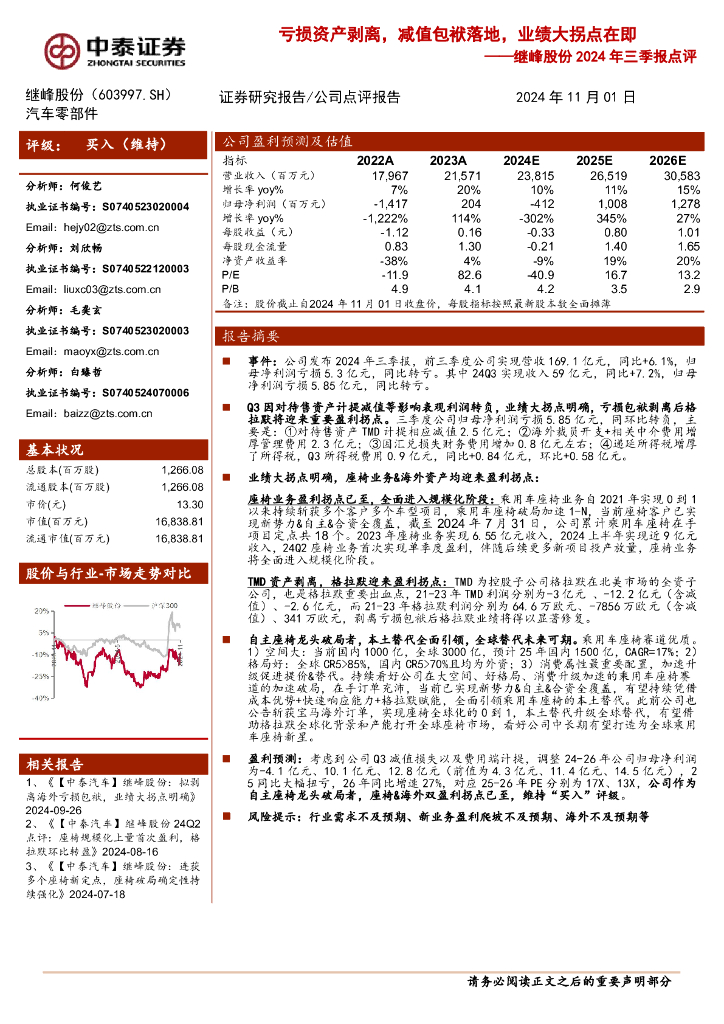中泰证券:继峰股份2024年三季报点评:亏损资产剥离,减值包袱落地,业绩大拐点在即.pdf