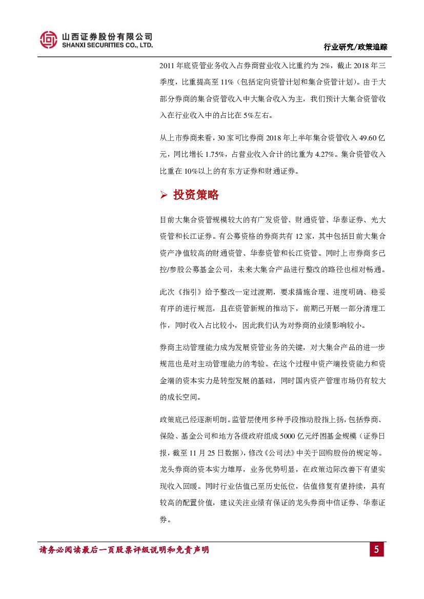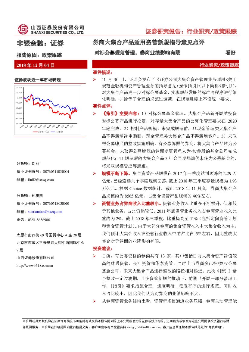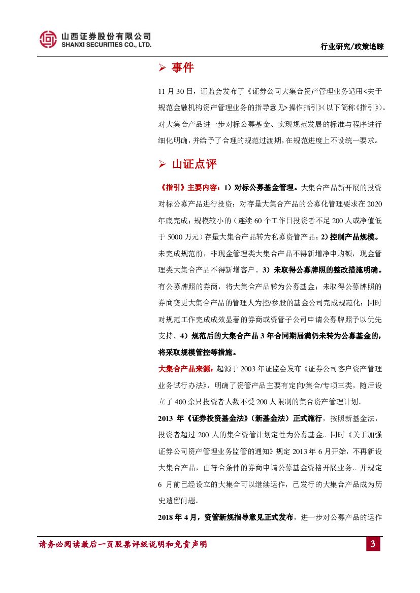 山西证券:券商大集合产品适用资管新规指导意见点评:对标公募规范管理,券商业绩影响有限.pdf
