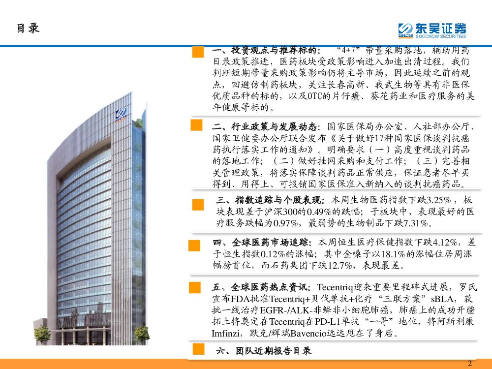 东吴证券:医药行业周观点:带量采购试点落地、辅助用药管理通知出台,政策主导医药板块加速完成调整.pdf