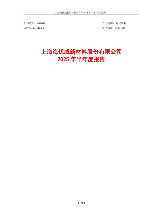 118008-海优新材:上海海优威新材料股份有限公司2025年半年度报告.pdf