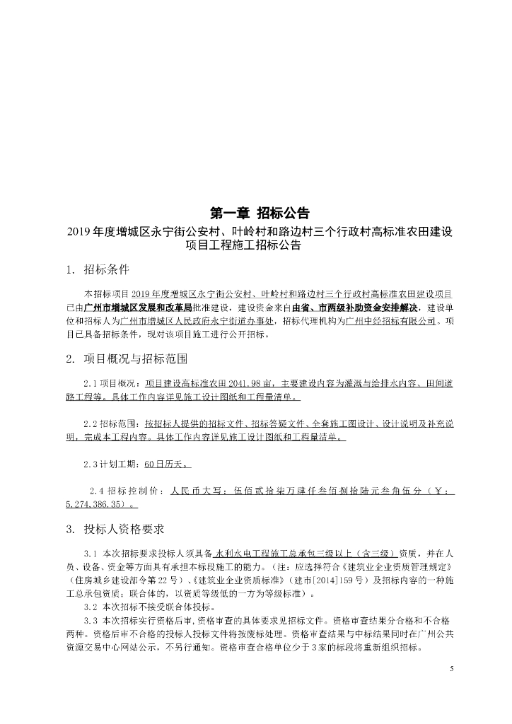 2019年高标准农田建设项目招标文件.doc