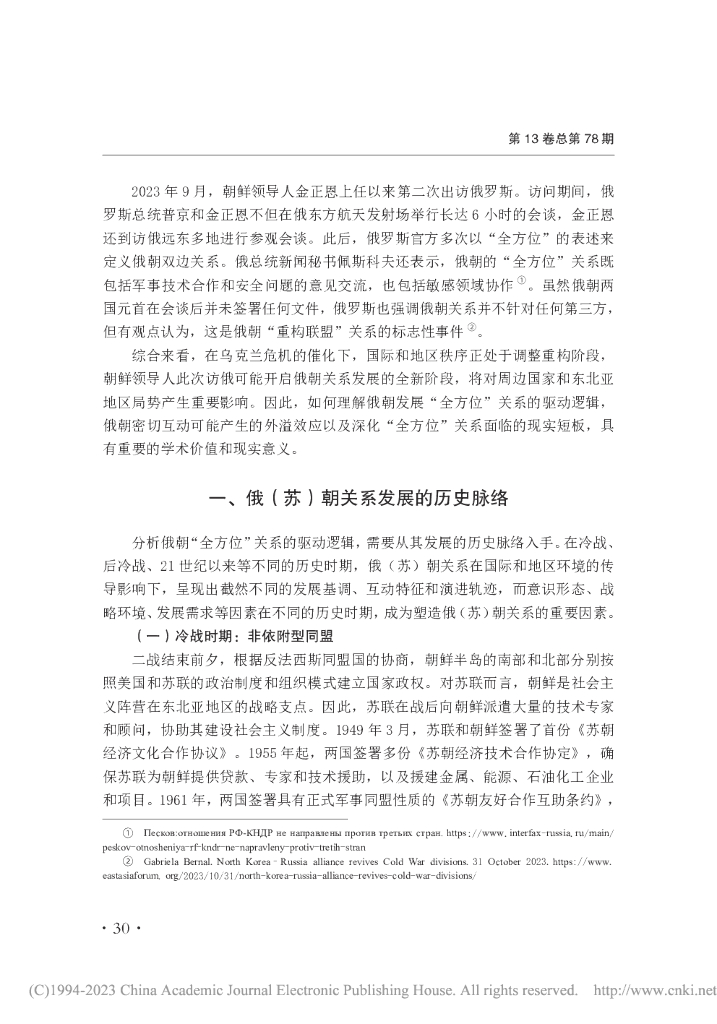 赵隆:俄朝构建“全方位”关系: 驱动逻辑、外溢效应与结构短板-俄罗斯学刊2023年第6期.pdf