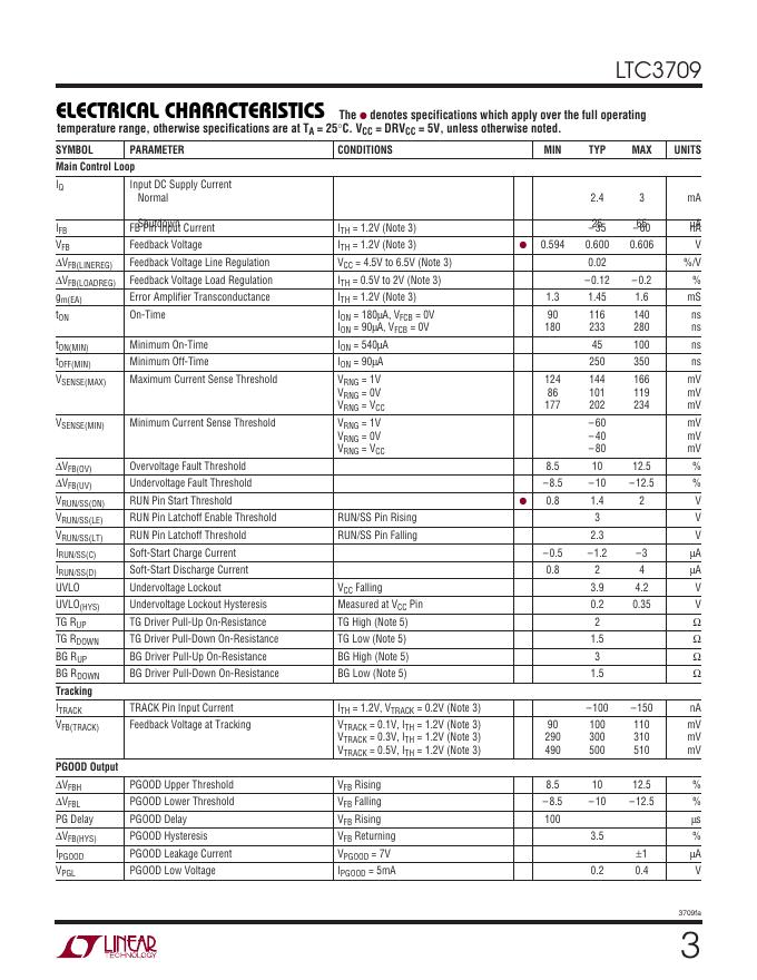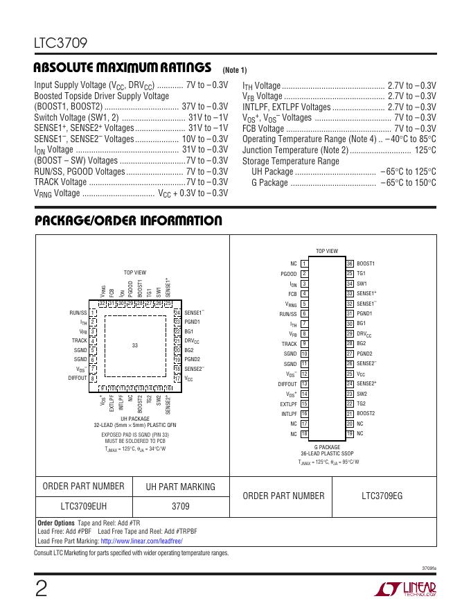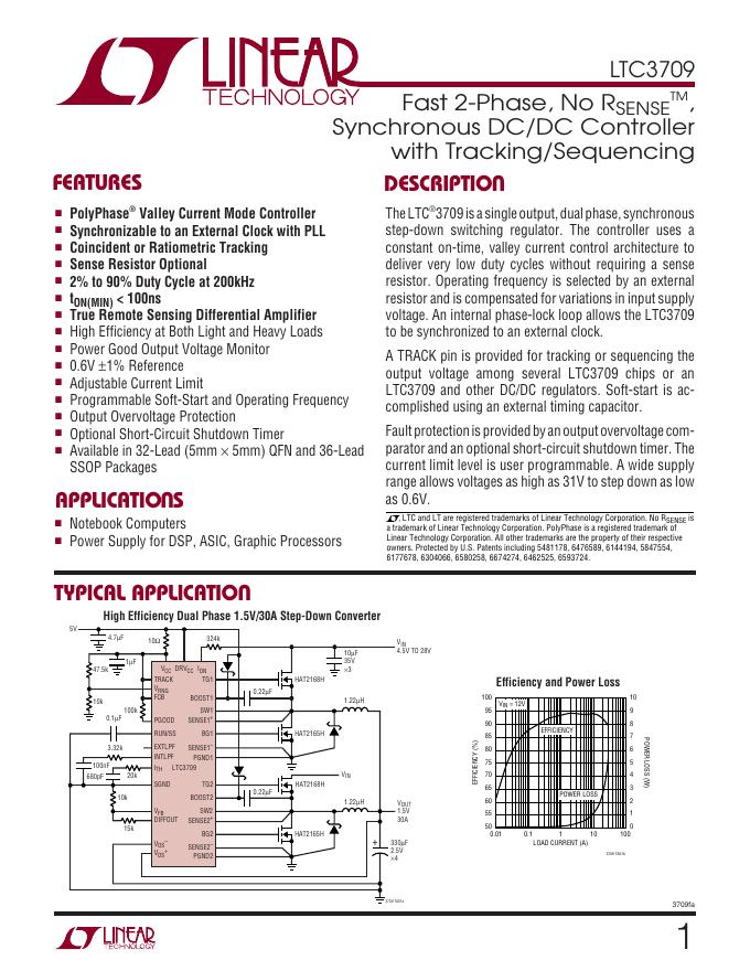 LINEAR TECHNOLOGY LTC3709 Fast 2-Phase, No RSENSE , Synchronous DC/DC Controller with Tracking/Sequencing 数据手册.pdf