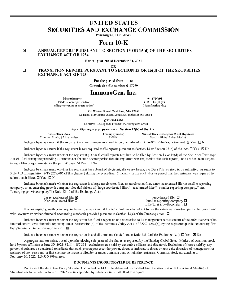 ImmunoGen Inc.(IMGN)2021财年年度报告(英文版).pdf