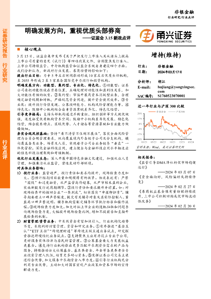 甬兴证券:非银金融行业证监会3.15新政点评:明确发展方向,重视优质头部券商.pdf