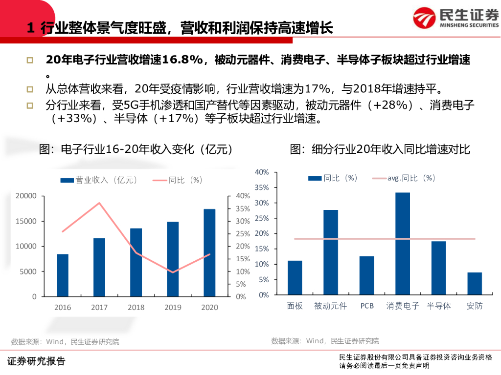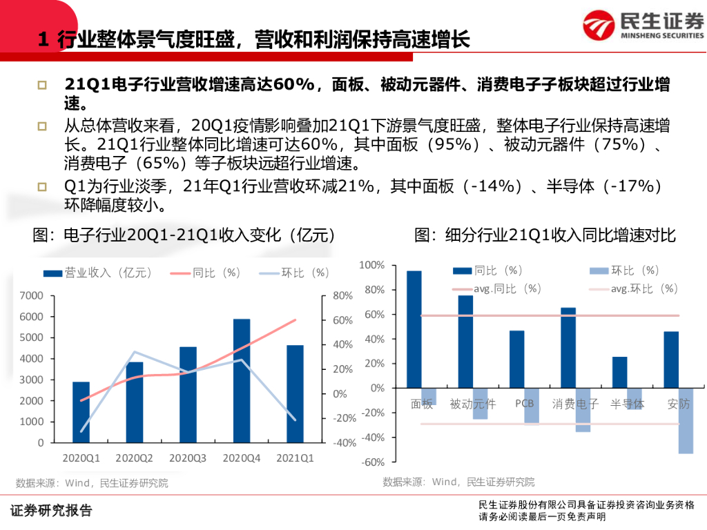 民生证券:电子行业2020年报和2021一季报总结:业绩增长强劲,电子行业景气延续.pdf