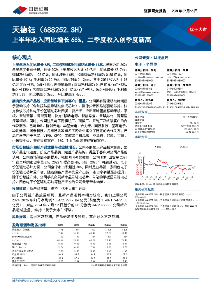 国信证券:天德钰(688252)-上半年收入同比增长68%,二季度收入创季度新高.pdf
