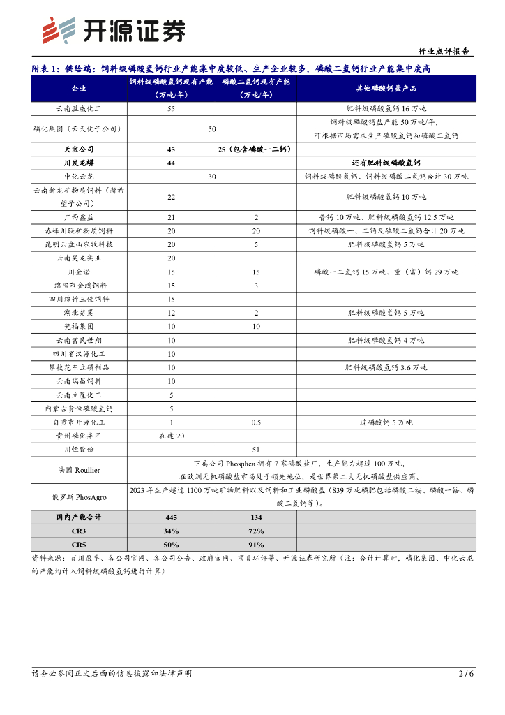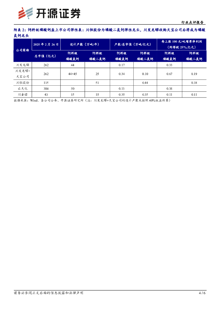 开源证券:基础化工行业点评报告:川发龙蟒拟收购天宝公司,关注饲料级磷酸钙盐行业供给优化,近期成本硫磺支撑、产品价格上行.pdf