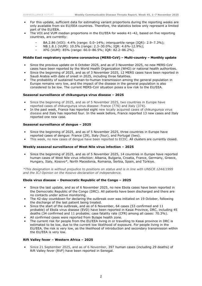 欧洲疾控中心:传染病威胁报告(2025年11月1日至7日,第45周)(英文版).pdf