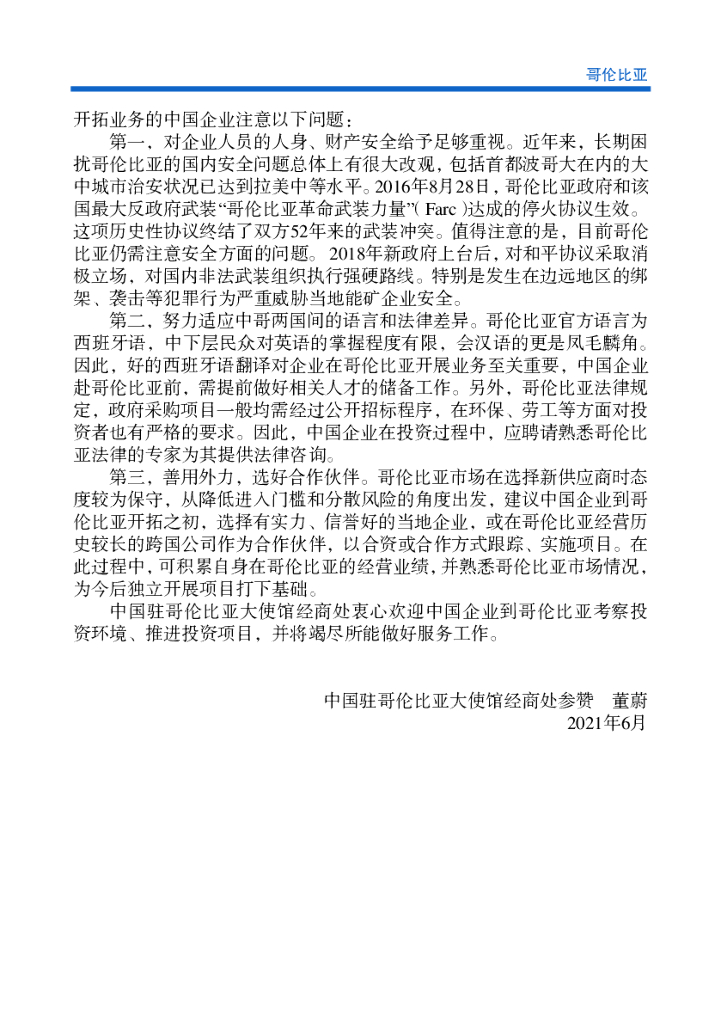 商务部:对外投资合作国别(地区)指南:哥伦比亚(2021年版).pdf