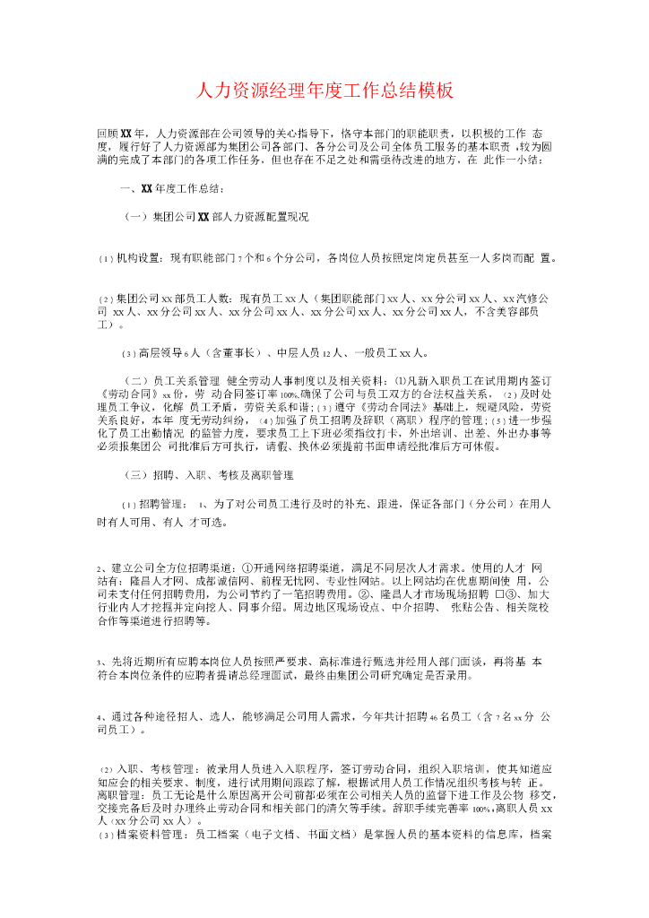 人力资源经理年终总结和计划.doc