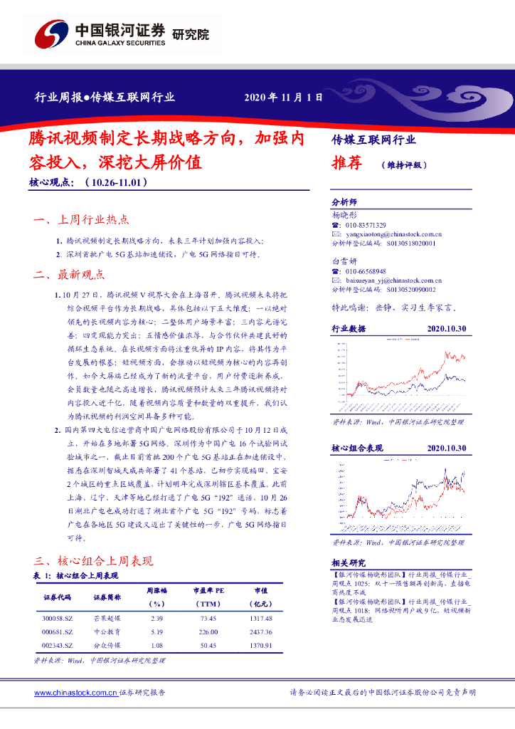 中国银河:传媒互联网行业:腾讯视频制定长期战略方向,加强内容投入,深挖大屏价值.pdf