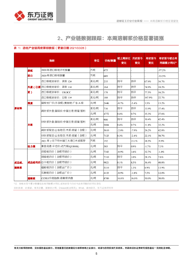 东方证券:造纸产业链数据每周速递:本周溶解浆价格显著提涨.pdf
