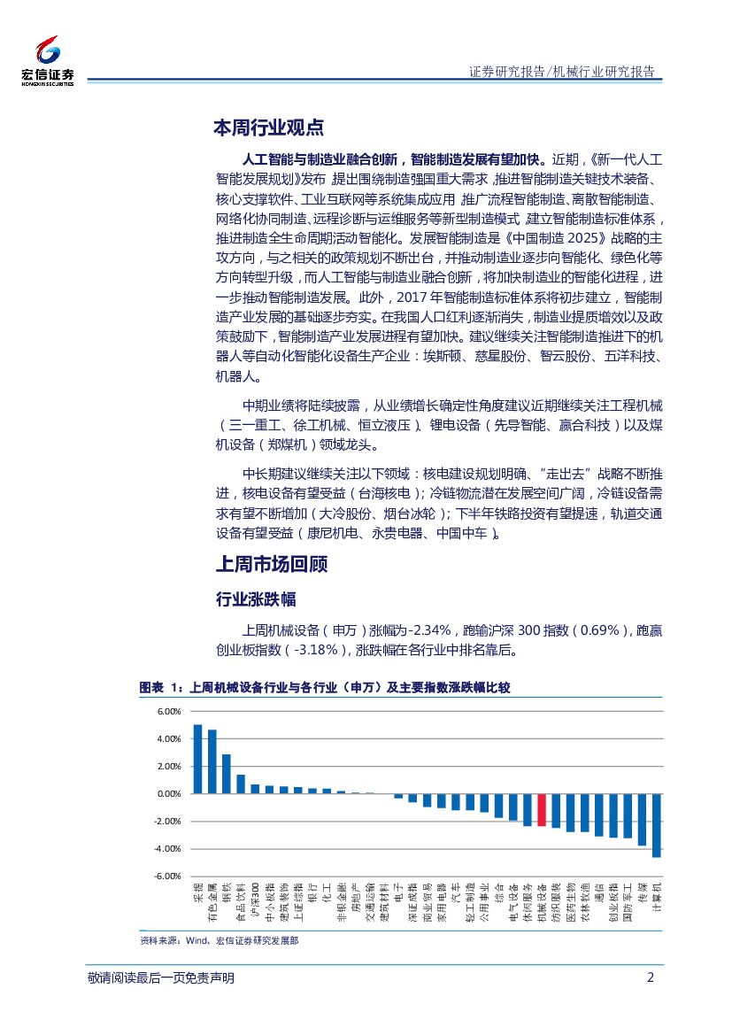 宏信证券:机械行业周报:人工智能与制造业融合创新,智能制造发展有望加快.pdf