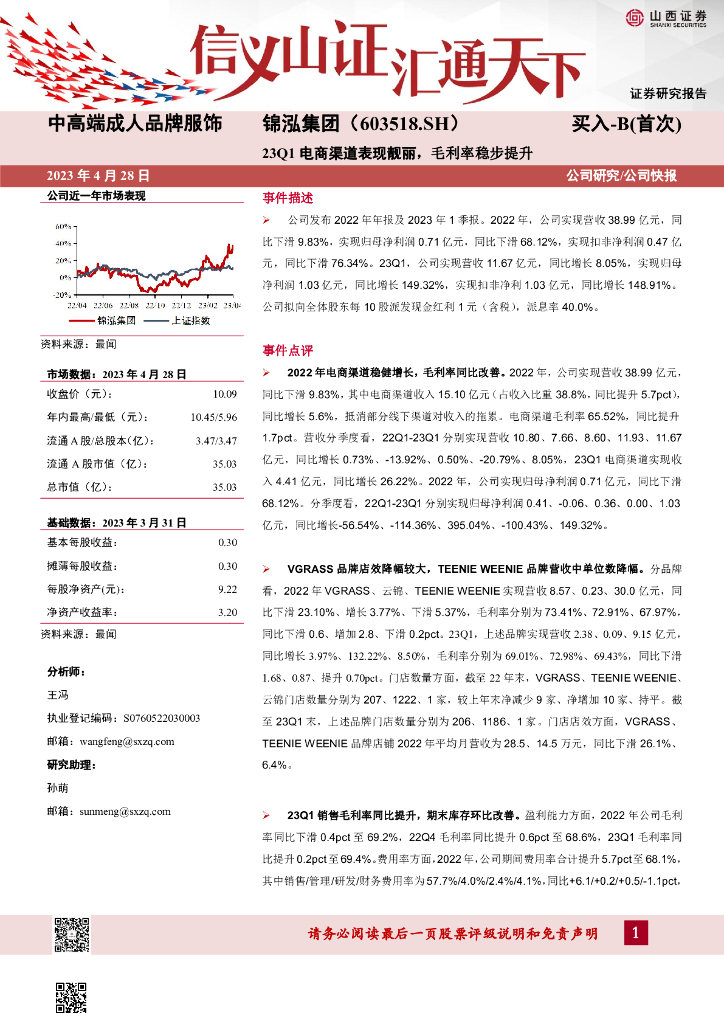 山西证券:锦泓集团(603518)-23Q1电商渠道表现靓丽,毛利率稳步提升.pdf