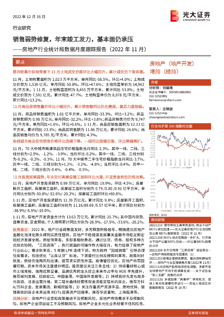 光大证券:房地产行业统计局数据月度跟踪报告(2022年11月):销售弱势修复,年末竣工发力,基本面仍承压.pdf