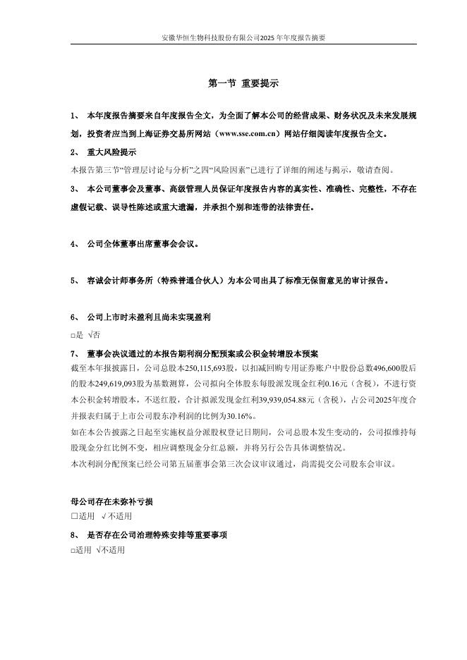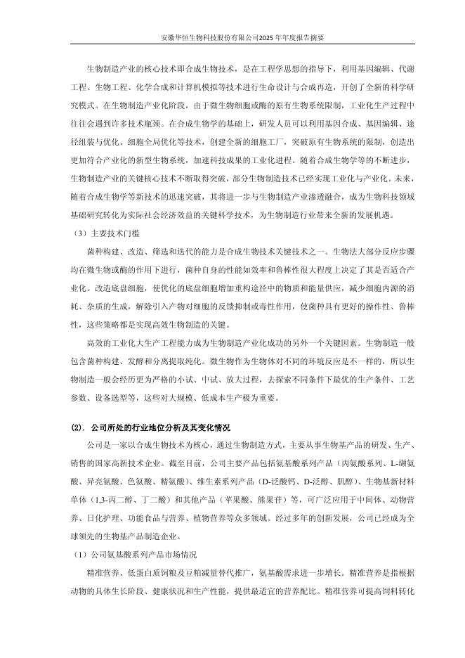 688639-华恒生物:安徽华恒生物科技股份有限公司2025年年度报告摘要.pdf