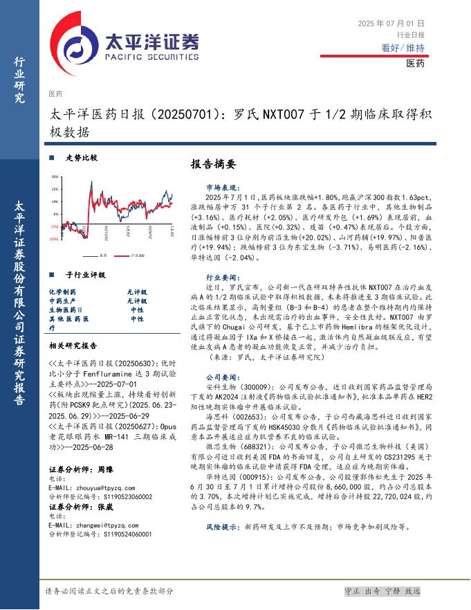 太平洋证券:医药日报:罗氏NXT007于1/2期临床取得积极数据.pdf