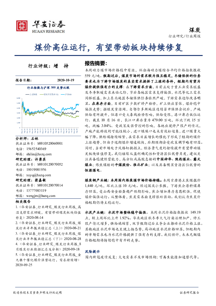 华安证券:煤炭行业周报:煤价高位运行,有望带动板块持续修复.pdf