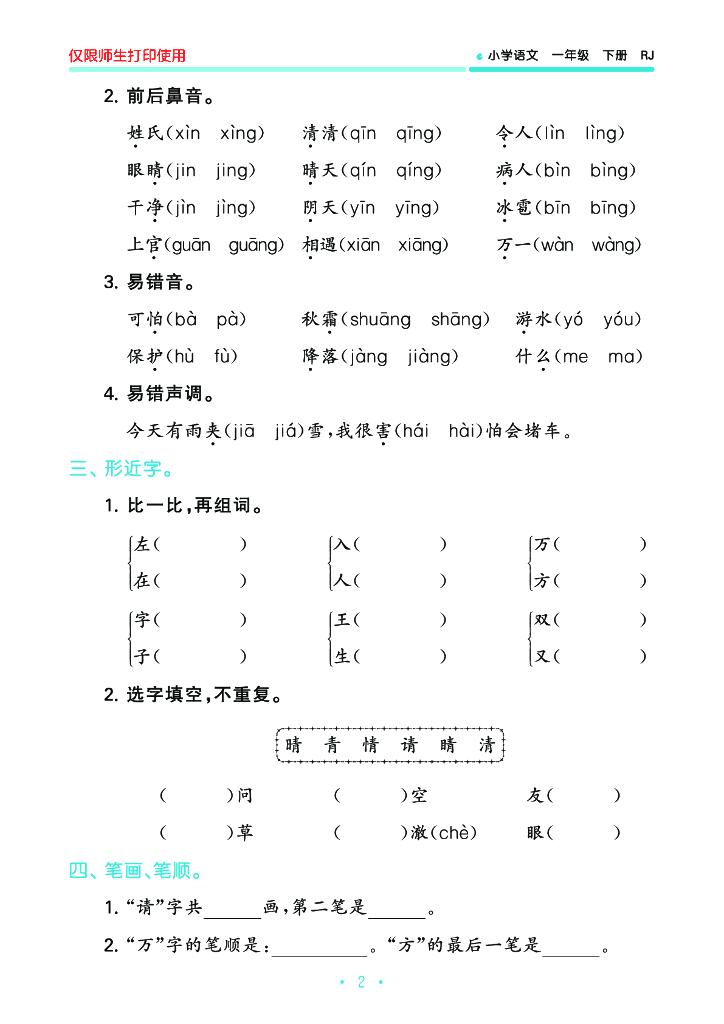 2022春5·3单元归类复习小学语文一年级下册.pdf