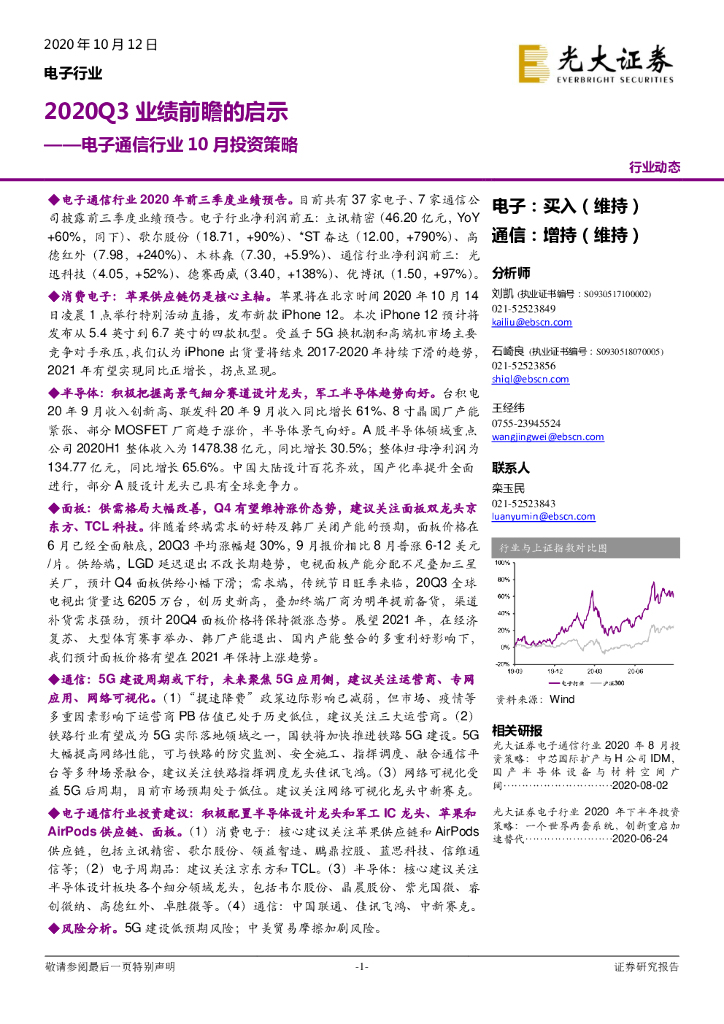 光大证券:电子通信行业10月投资策略:2020Q3业绩前瞻的启示.pdf