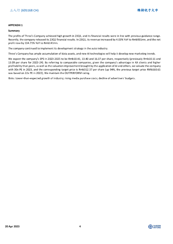 海通国际:三人行(605168)-23Q1业绩高增符合预告,数据资产积累深厚,AI新技术助力打造营销新趋势.pdf