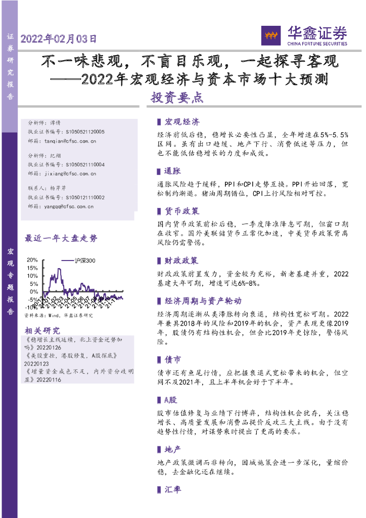 华鑫证券:2022年宏观经济与资本市场十大预测:不一味悲观,不盲目乐观,一起探寻客观.pdf