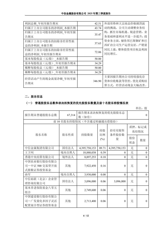 601061-中信金属:中信金属股份有限公司2025年第三季度报告.pdf