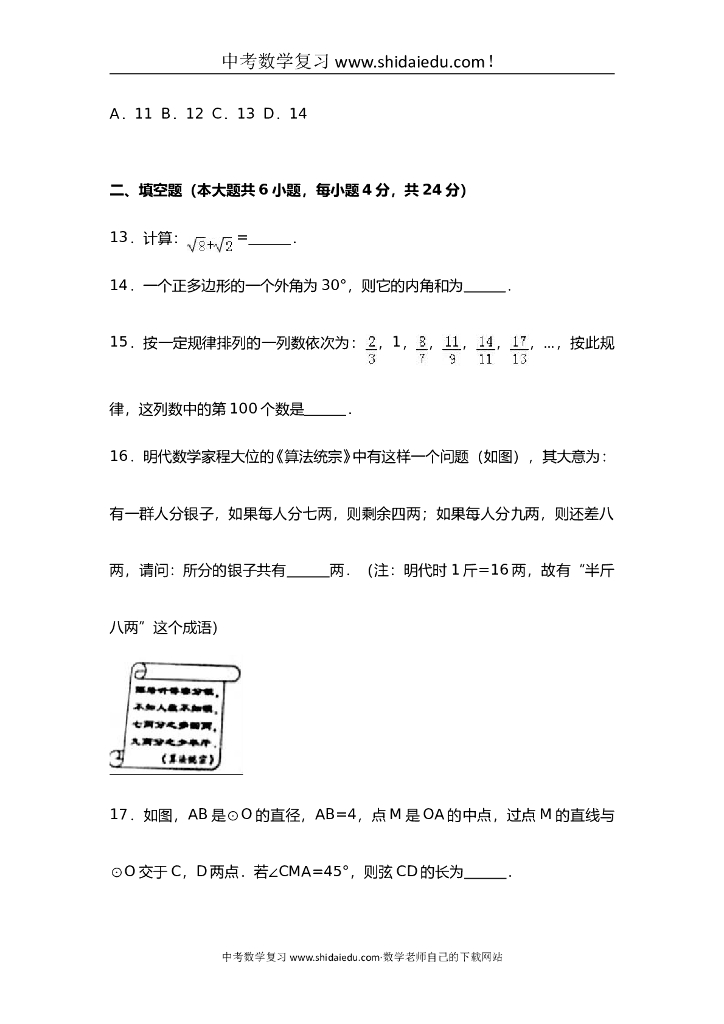 贵州遵义市中考数学试题【解析版】.doc