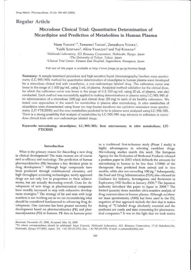CMIC:微剂量临床试验:尼卡地平在人体血浆中的定量测定及其代谢物的预测(英文版).pdf