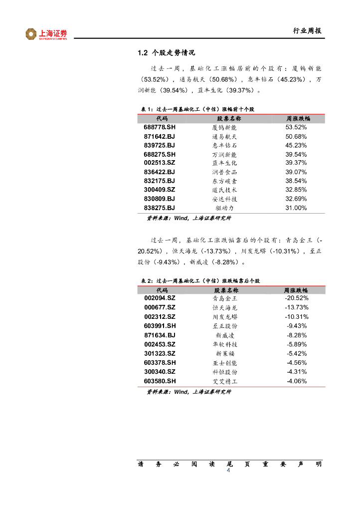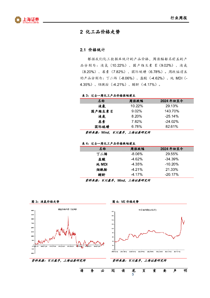 上海证券:基础化工行业周报:维生素、液氯涨幅居前,关注顺周期与内需复苏方向.pdf