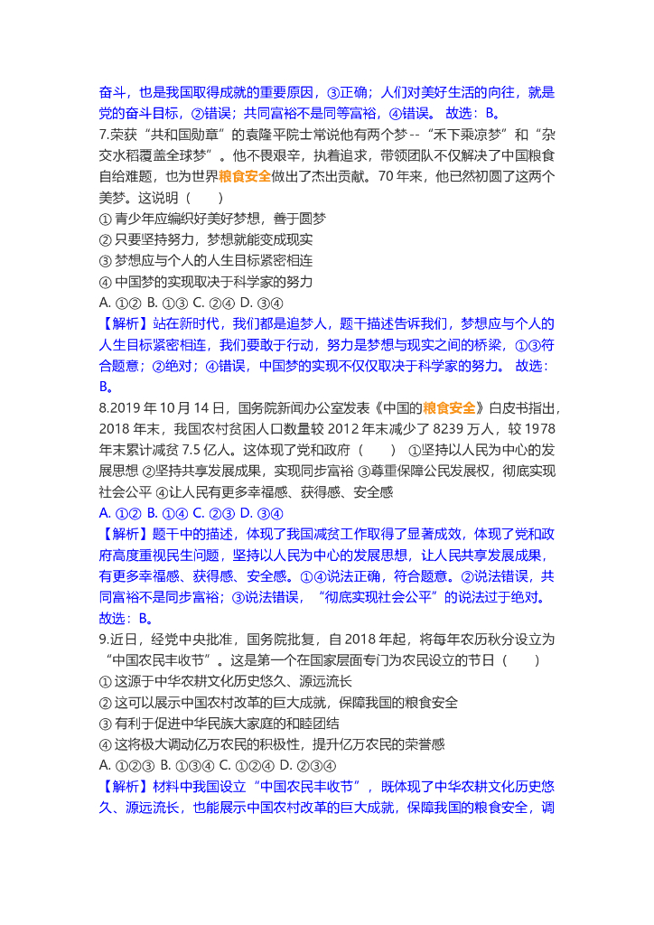 道德与法治中考重点词练习:粮食安全.doc