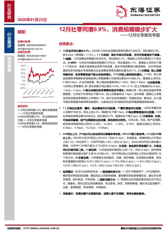 东海证券:12月社零报告专题:12月社零同增0.9%,消费规模稳步扩大.pdf