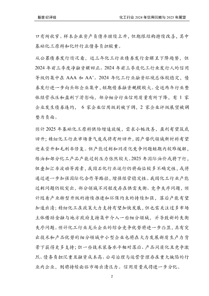 新世纪评级:化工行业2024年信用回顾与2025年展望报告.pdf