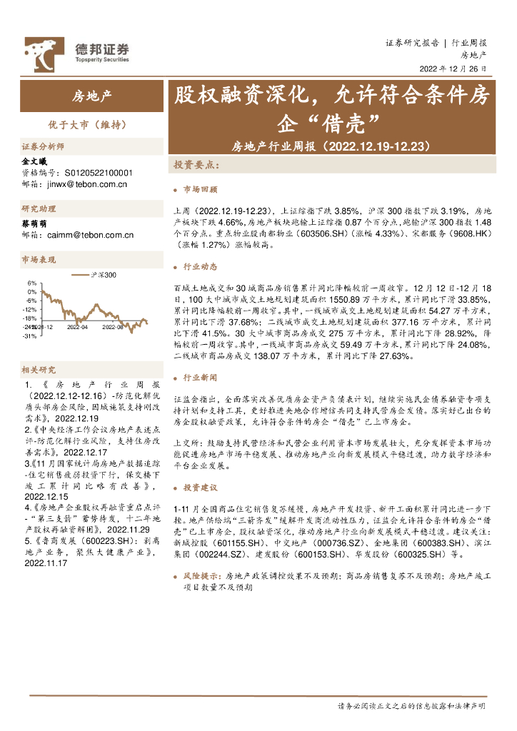 德邦证券:房地产行业周报:股权融资深化,允许符合条件房企“借壳”.pdf