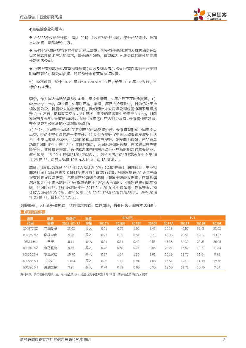 天风证券:纺织服装行业研究周报:再次提示板块预期见底,继续推荐纺服超跌业绩底组合.pdf