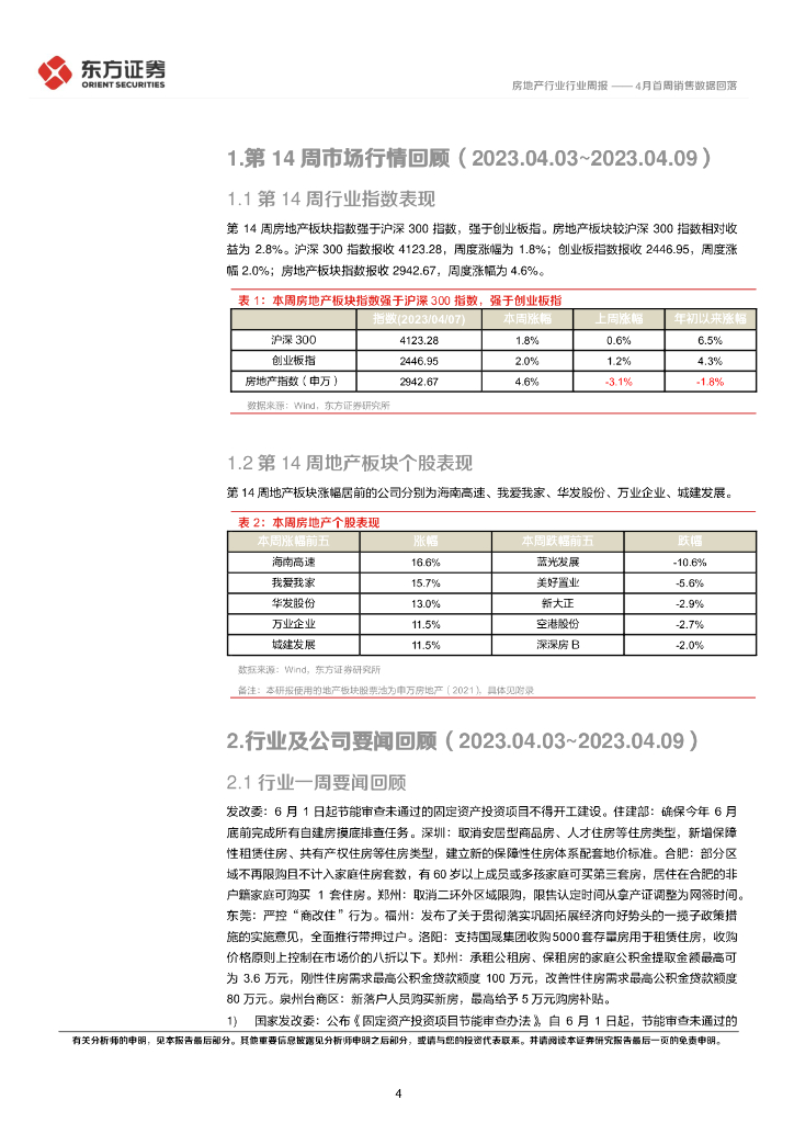 东方证券:2023年第14周地产周报:4月首周销售数据回落.pdf