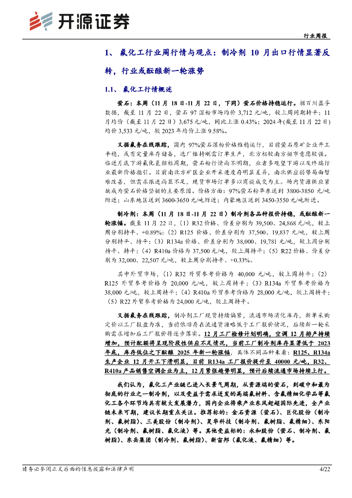 开源证券:氟化工行业周报:制冷剂10月出口行情显著反转,行业或酝酿新一轮涨势.pdf