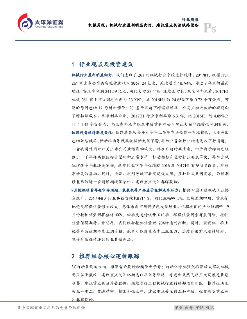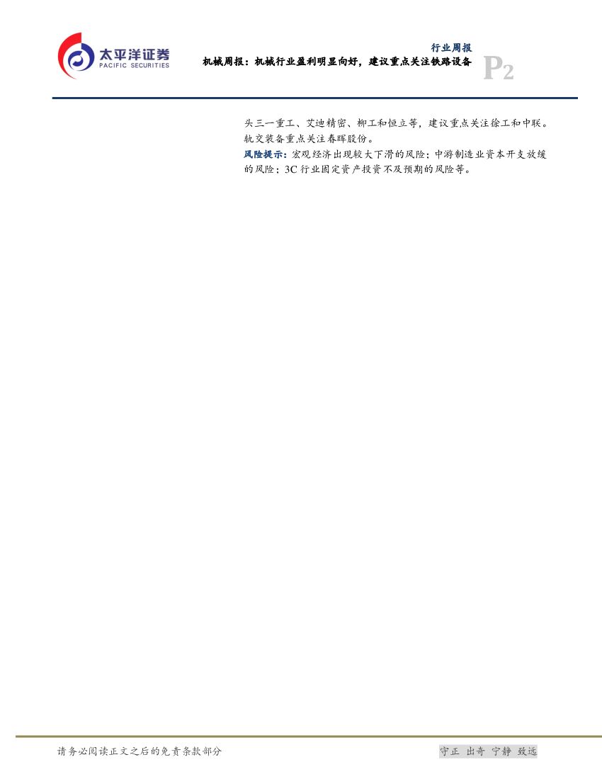 太平洋证券:机械周报:机械行业盈利明显向好,建议重点关注铁路设备.pdf