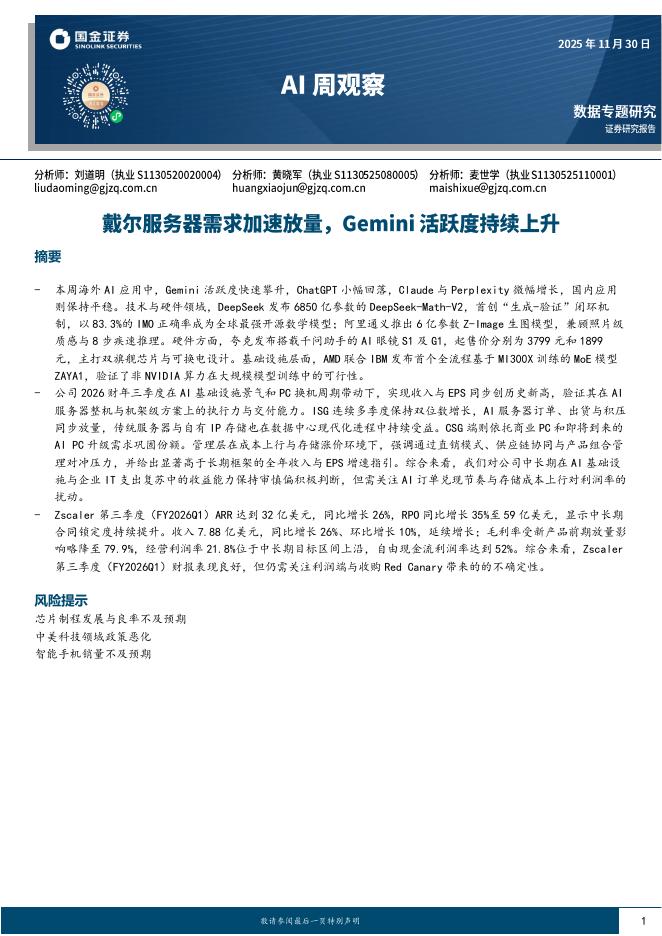 国金证券:AI周观察:戴尔服务器需求加速放量,Gemini活跃度持续上升.pdf