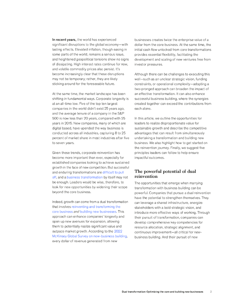麦肯锡:2024年双重转型:优化核心,打造新业务报告(英文版).pdf