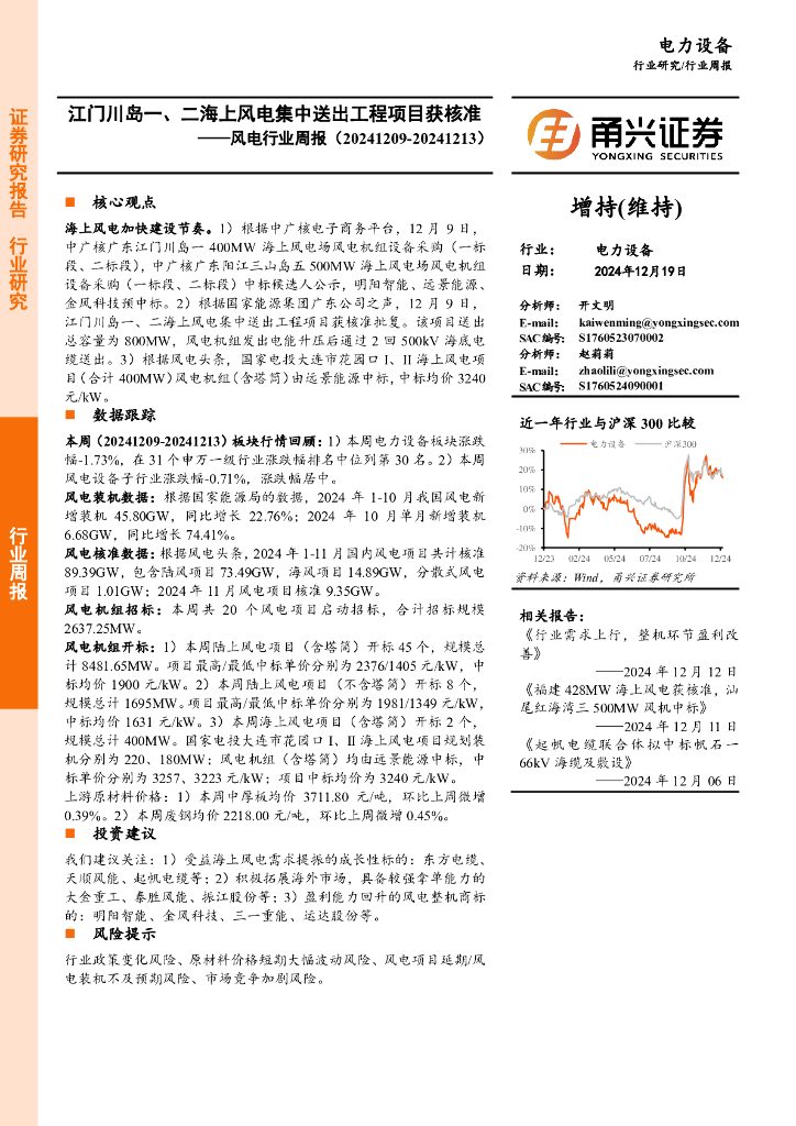 甬兴证券:风电行业周报:江门川岛一、二海上风电集中送出工程项目获核准.pdf