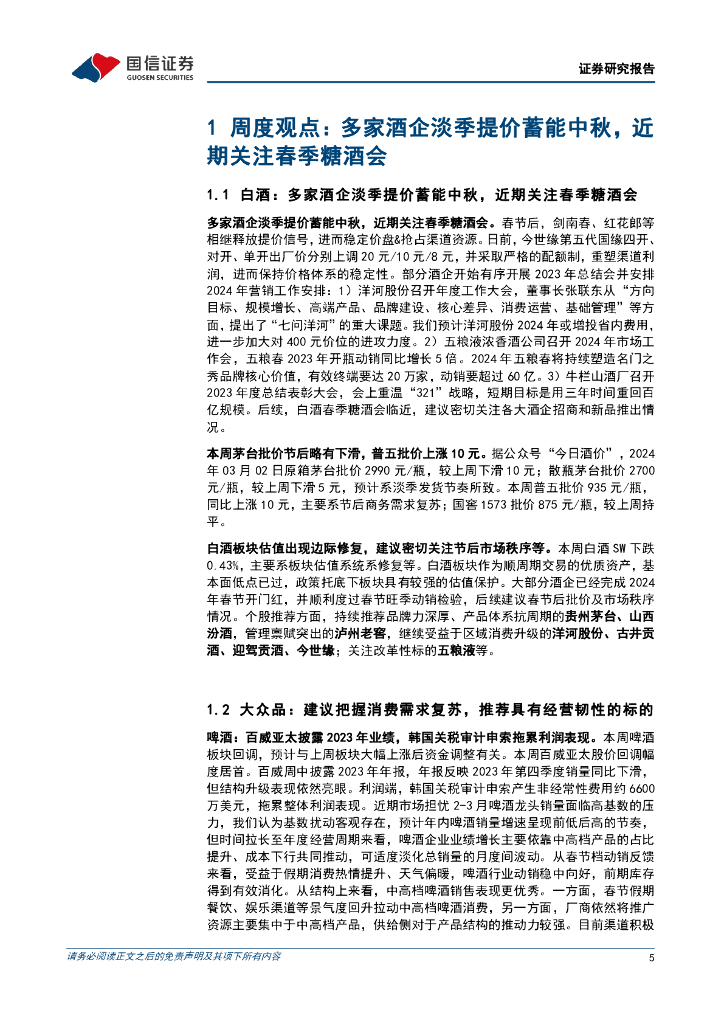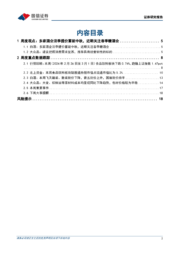 国信证券:食品饮料周报(24年第8周):多家酒企淡季提价蓄能中秋,近期关注春季糖酒会.pdf