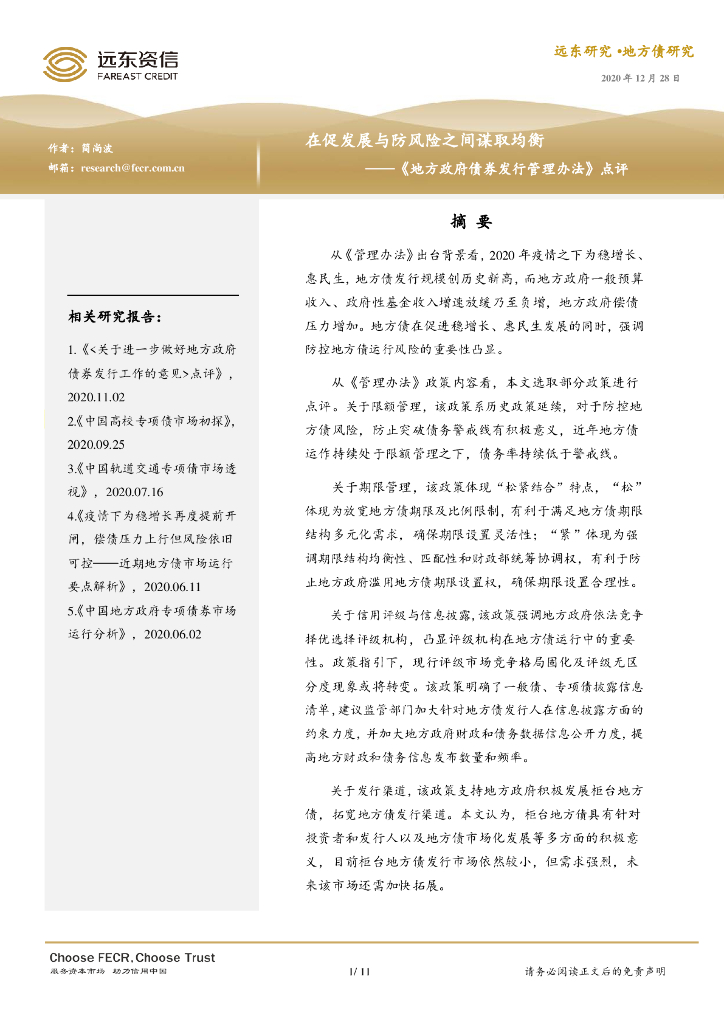 远东资信:在促发展与防风险之间谋取均衡——《地方政府债券发行管理办法》点评.pdf