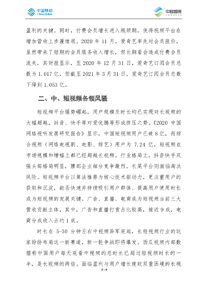 中移智库:我国视频行业下半场—内容运营及变现(2021).pdf