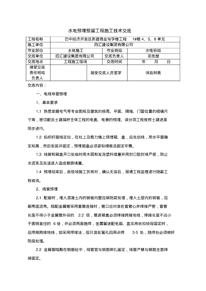 [四川]大型商业写字楼水电预留预埋施工技术交底.pdf