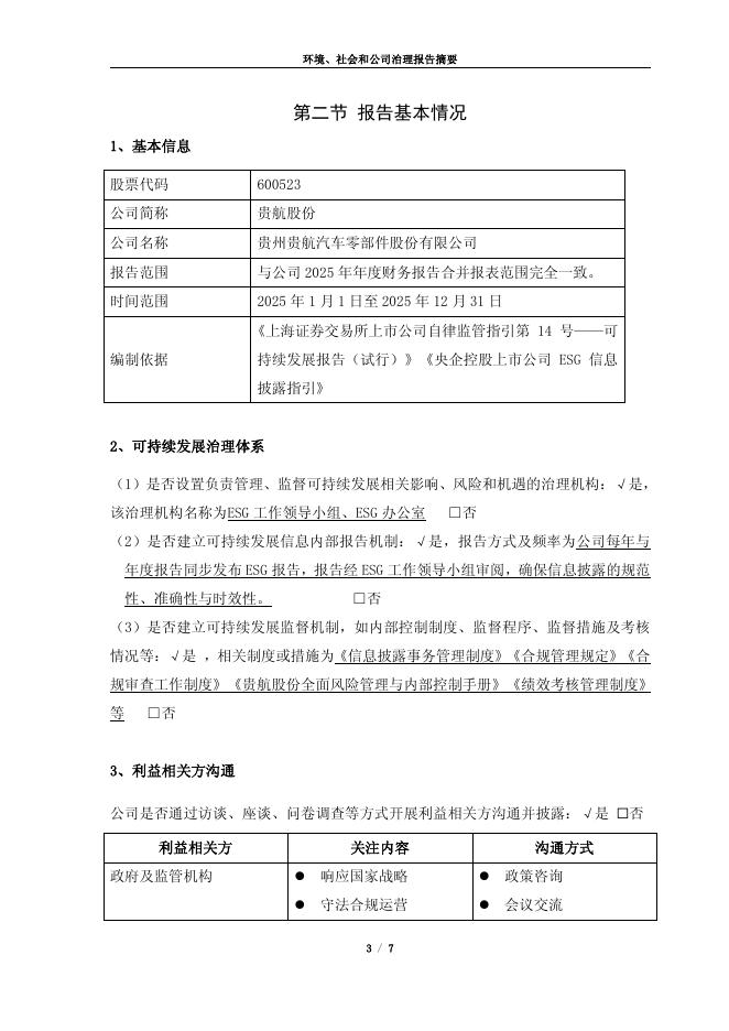 600523-贵航股份:贵航股份2025年度环境、社会、公司治理(ESG)报告摘要.pdf